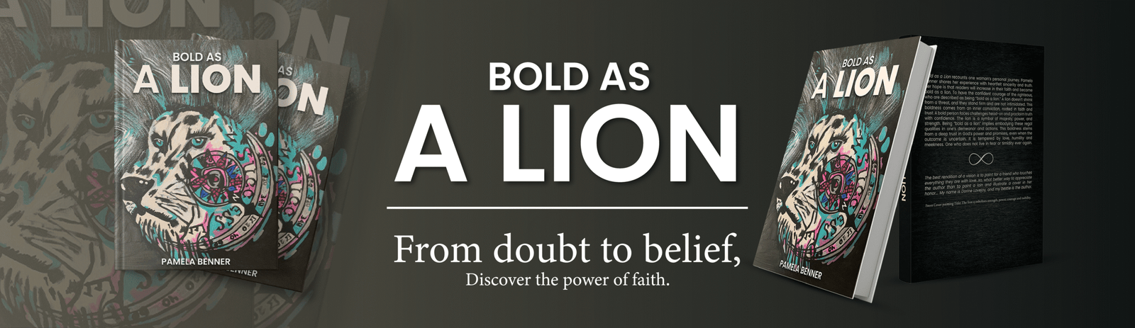 “Bold as a Lion” recounts one woman’s personal journey. Pamela Benner shares her experience with heartfelt sincerity and truth. Her hope is that readers will increase in their faith and become bold as a lion — to have the confident courage of the righteous, who are described as being “bold as a lion.”